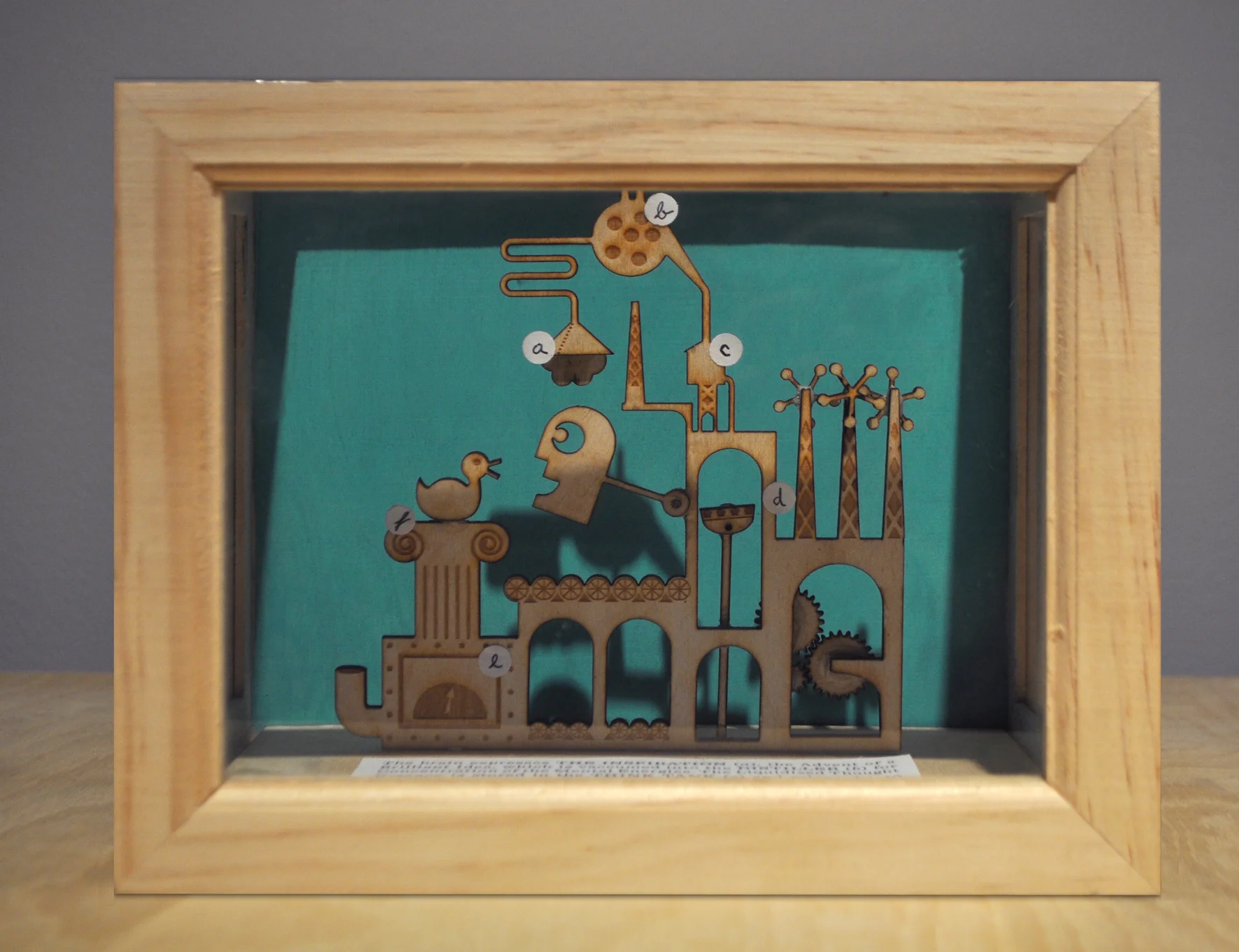 A unique modern device for the transmutation of abstract thought into concrete objects. Harnessing the mysteries of chemistry and the power of mechanical movement, The Eureka Machine captures dreams, enfleshes desires and makes the unreal incarnate.