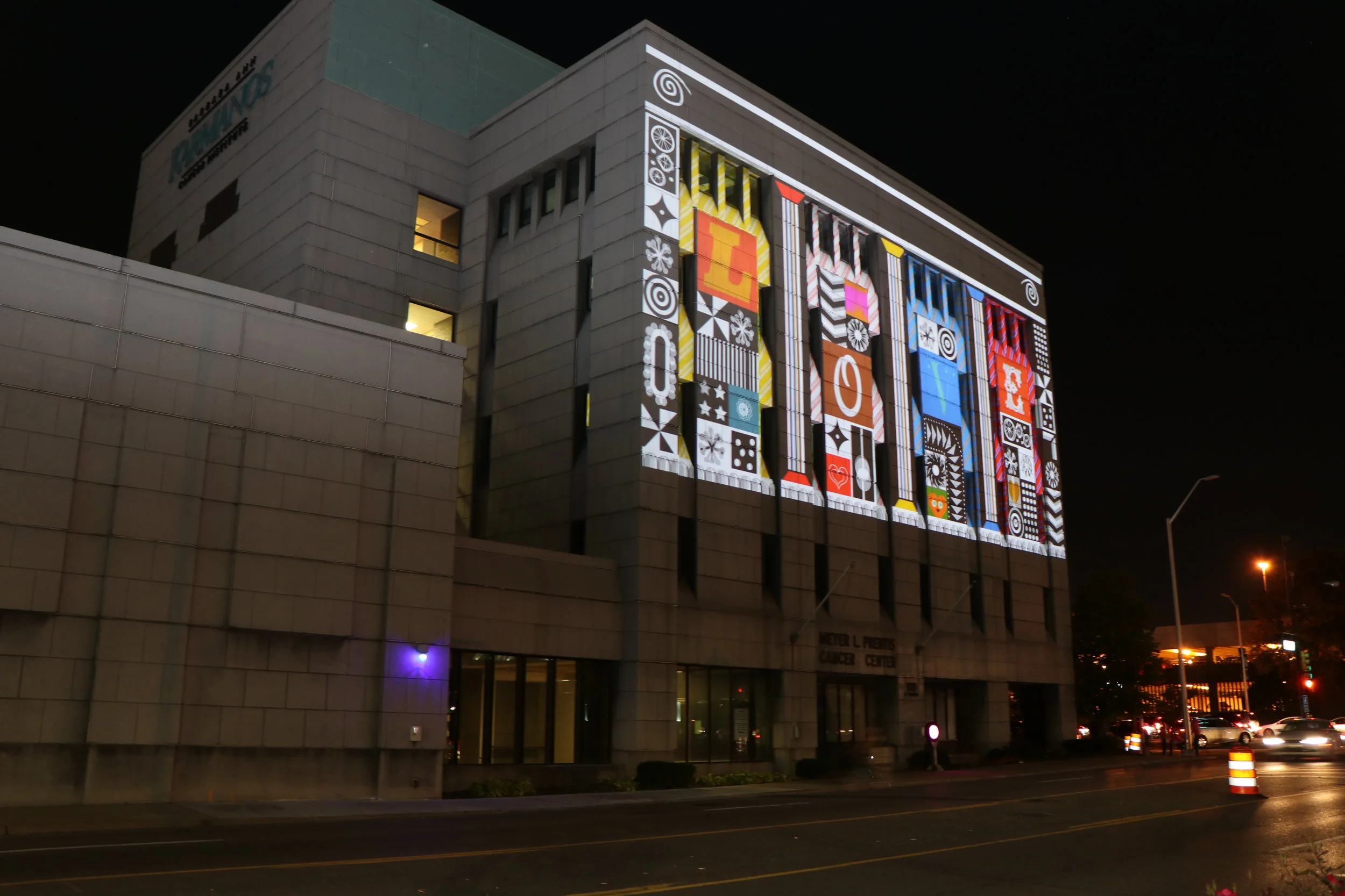 Carnival Love Wall Detroit is the second iteration of a modular projection mapping work consisting of dozens of small animated elements that can be assembled, much like toy blocks or Legos, to create a complete animated surface that can be remodeled and shaped to accommodate almost any architecture and/or structure.